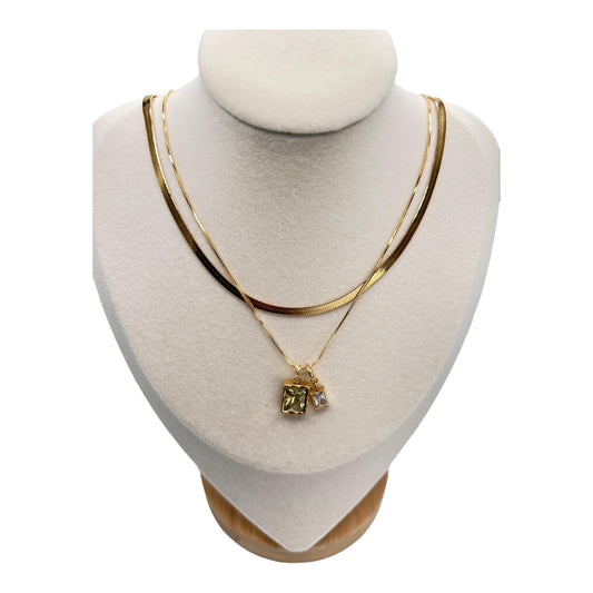 Doris - Duo Snake & Rope Crystal Pendant Layering Chain Necklace